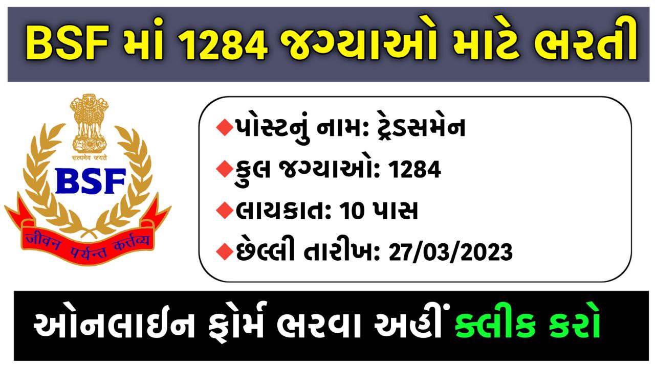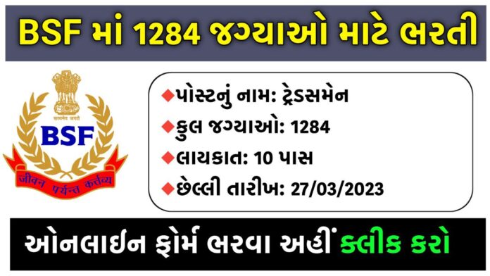 BSF Tradesman Recruitment 2023:Border Security Force BSF has recently invited online applications for a total of 1284 posts of Constable Tradesman. Interested candidates can apply for this recruitment. All the information related to BSF Constable Recruitment 2023 is given below on this page. After checking all the BSF Tradesman Recruitment information, interested and eligible candidates may apply online. The complete process to apply is given below on this page, apply link will also be found below. For more information about this visit the official website.