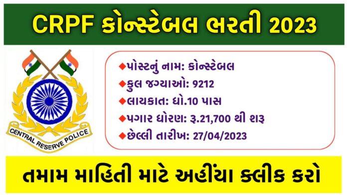 CRPF Constable Tradesman Recruitment 2023 – Central Reserve Police Force (CRPF) Has Published An Official Advertisement For Constable Tradesman Recruitment. Eligible Candidates Are Advised To Refer To The Latest Notification & Online Apply For This CRPF Constable Tradesman Bharti 2023. You Can Find For More Details Like Post Name, Age Criteria, Qualification, Selection Mode, Application Fee and How to Apply Are Given Below For Recruitment 2023. Keep checking Jobsmarugujarat.xyz Regularly To Get The Latest Updates For CRPF Constable Tradesman Bharti 2023.