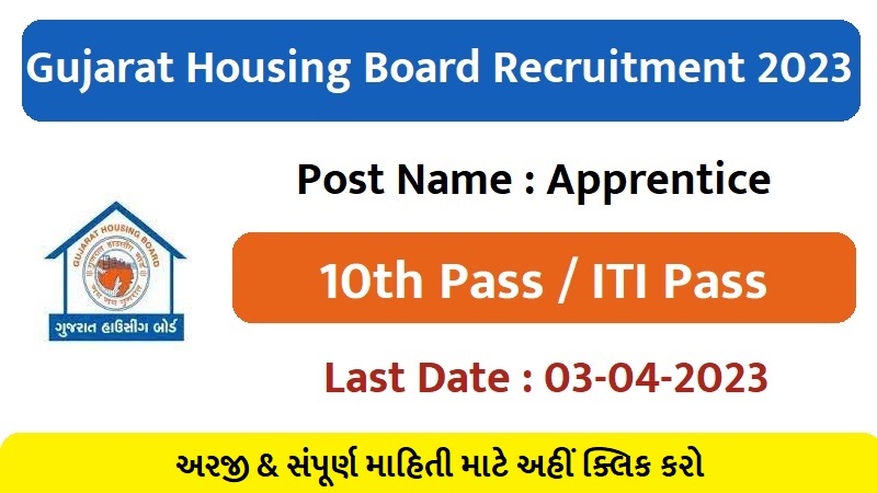 GHB Recruitment 2023 for Apprentice Posts 2023 – Gujarat Housing Board (GHB Recruitment 2023) has published an Latest Advertisement for the Apprentice Posts . Eligible Candidates are advised to refer to the official Latest advertisement and apply for this post. You can find other details like age criteria, educational qualification, selection process, experience, application fee, and how to apply are given below. Keep checking Ojas Alert regularly to get the latest updates.