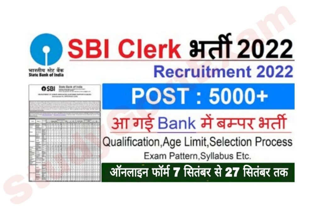 SBI Clerk Online Form 2022 :- State Bank of India has recently invited online application for the post of 5008 Clerk Junior Associate. All the candidates who were waiting for SBI Clerk Recruitment, the wait of all the candidates is over. State Bank of India has released SBI Recruitment from 7th September to 27th September 2022 to apply. All the candidates who want to apply, let them know, check the official notification carefully before applying. Fill the form after checking all the information like Eligibility Criteria Education Qualification Age Limit Last Date Selection Process. All the information related to which Indian has been taken on this page, you will also get to see the apply link below. For more information visit the official website.